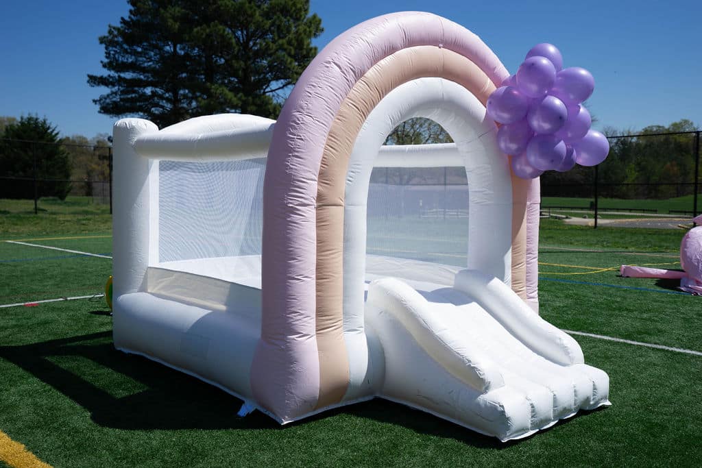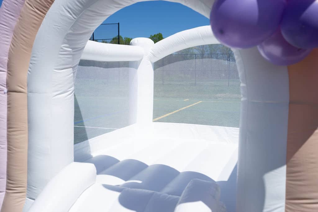 This 8 x 8 ft bounce house has relatively low clearance, so it can easily be installed indoors or outdoors to meet your needs.